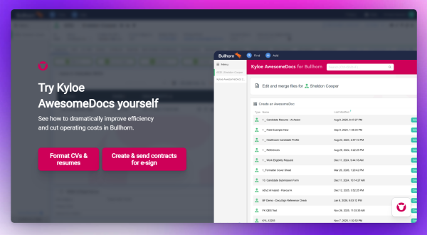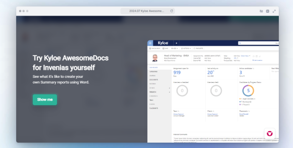 See how to generate candidate NDAs, Right to Represent letters, business proposals and terms of business directly from Invenias with Kyloe AwesomeDocs.