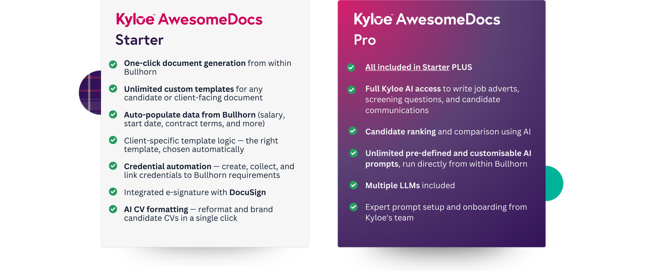 Built with Bullhorn users in mind, Kyloe AwesomeDocs sits within your platform for a seamless experience. Set your team up for success and work from a single source of truth.