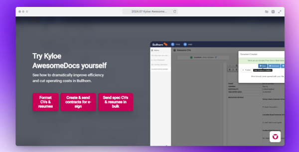 See how to generate candidate NDAs, Right to Represent letters, business proposals and terms of business directly from Invenias with Kyloe AwesomeDocs.